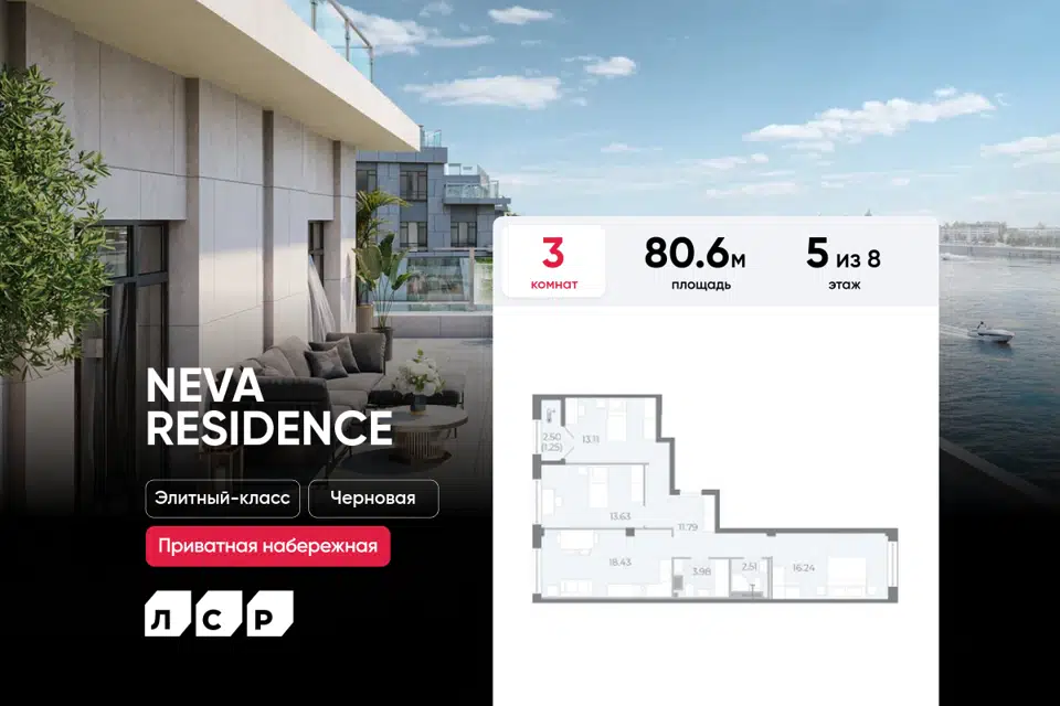 3-комн. кв., от 80.8 м², 5-8 этажи