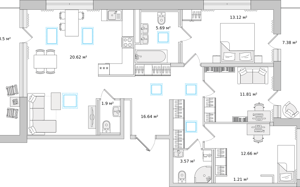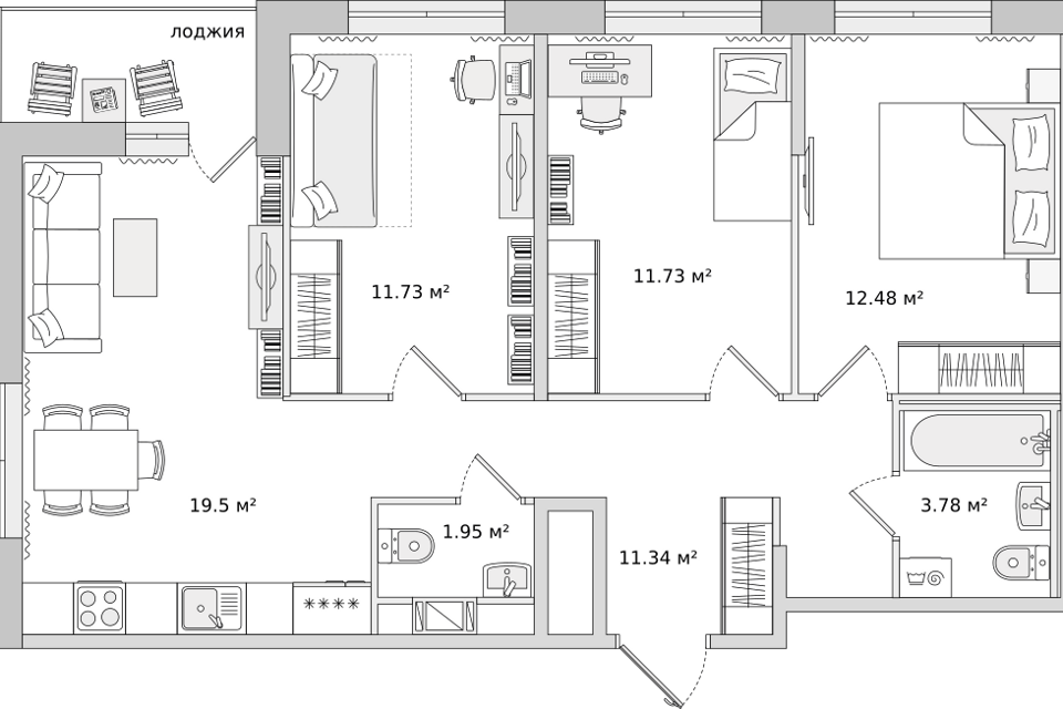 3-комн. кв., 82.84 м², 6/13 этаж