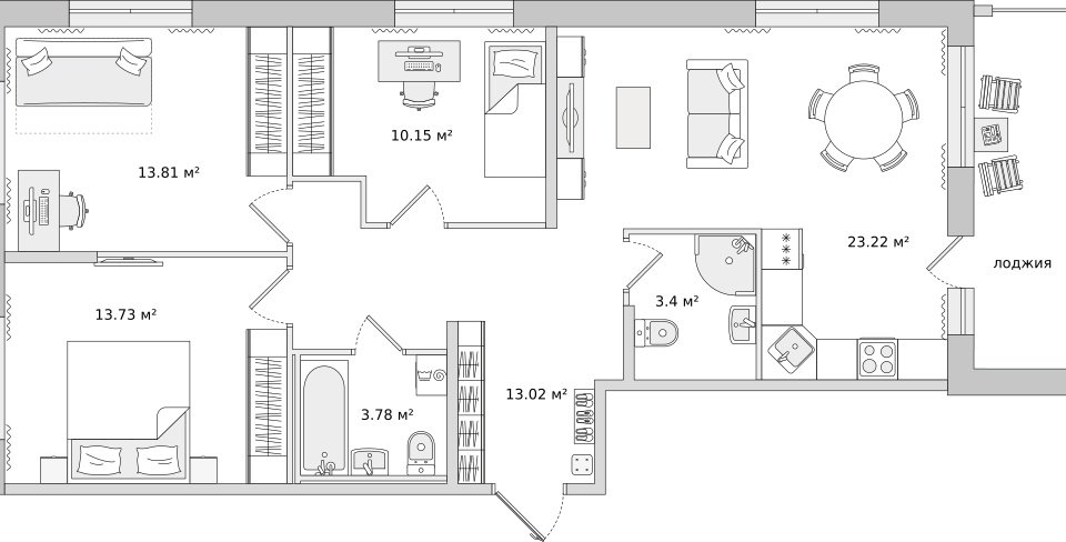 3-комн. кв., 96.4 м², 3/13 этаж