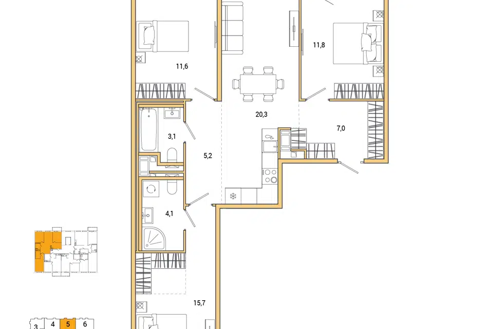 3-комн. кв., от 87.95 м², 4-7 этажи