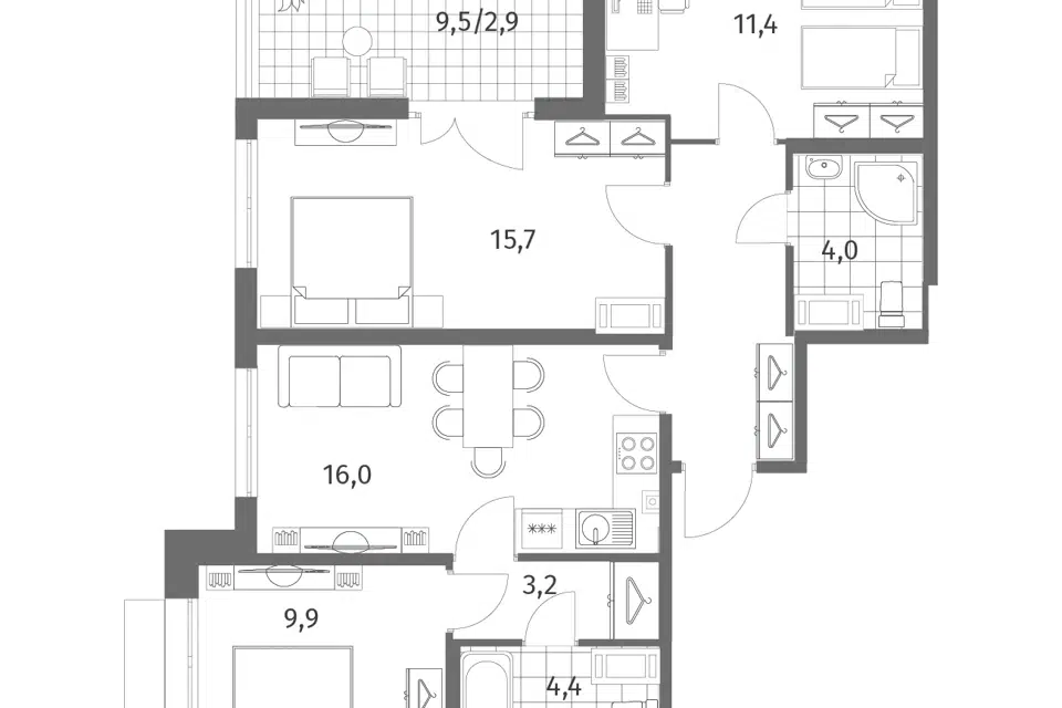 3-комн. кв., от 96.3 м², 2-11 этажи