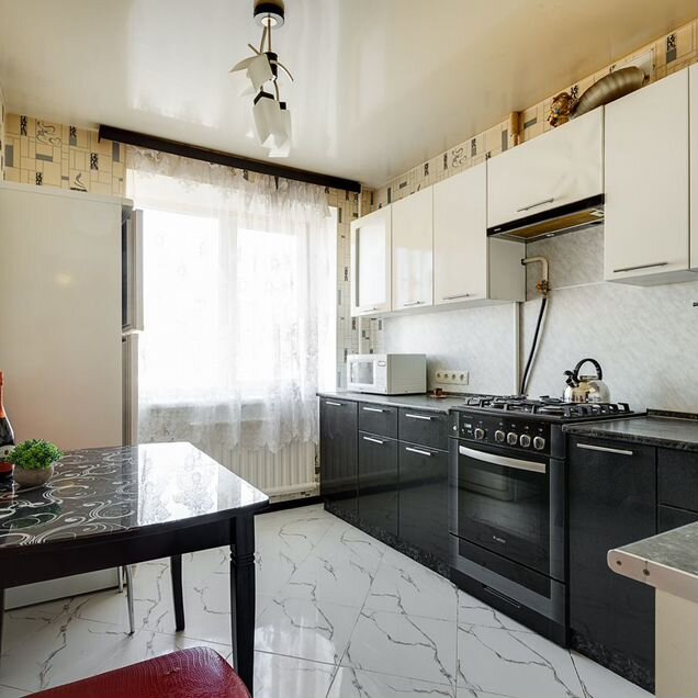При продаже в квартире останься бытовая техника, кухонный гарнитур и шкафы.