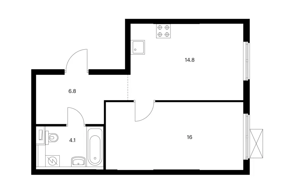 1-комн. кв., от 29.12 м², 4-11 этажи