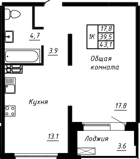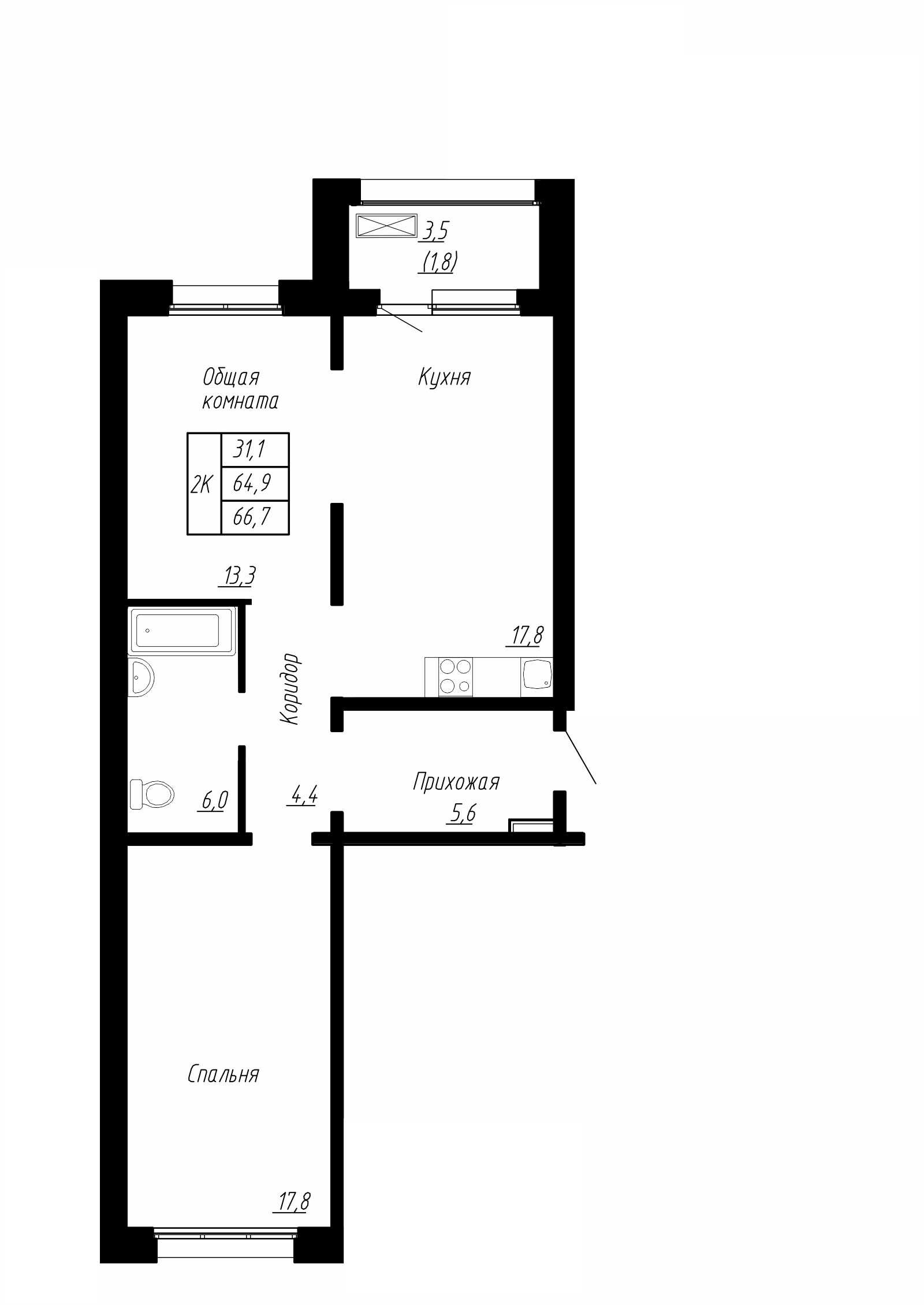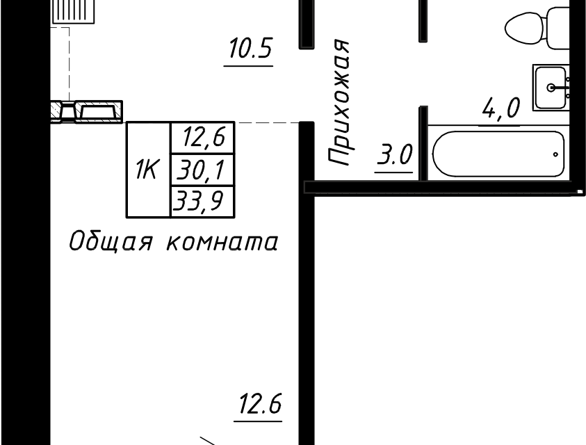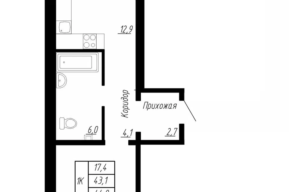1-комн. кв., от 30.93 м², 5/1 этаж