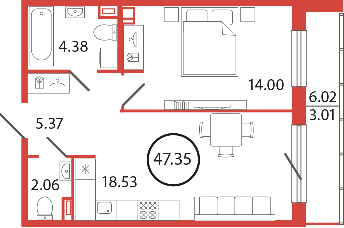1-комн. кв., от 47.35 м², 2-3 этажи