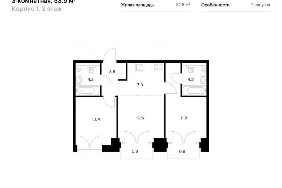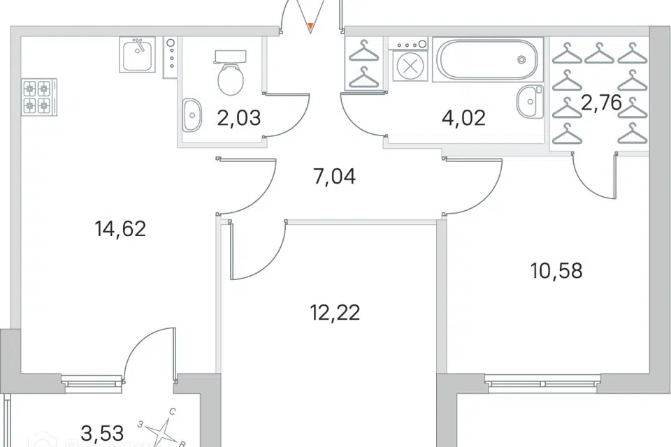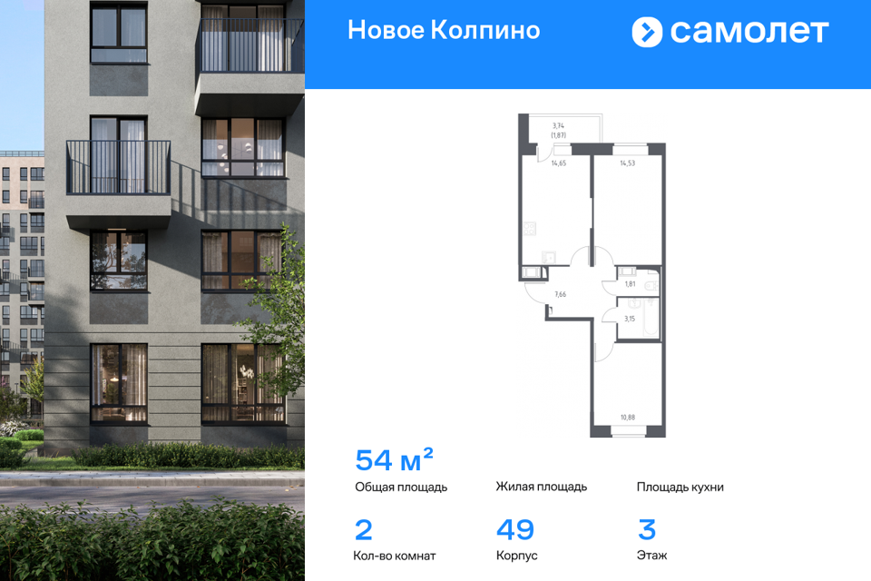 2-комн. кв., 53.9 м², 2/10 этаж
