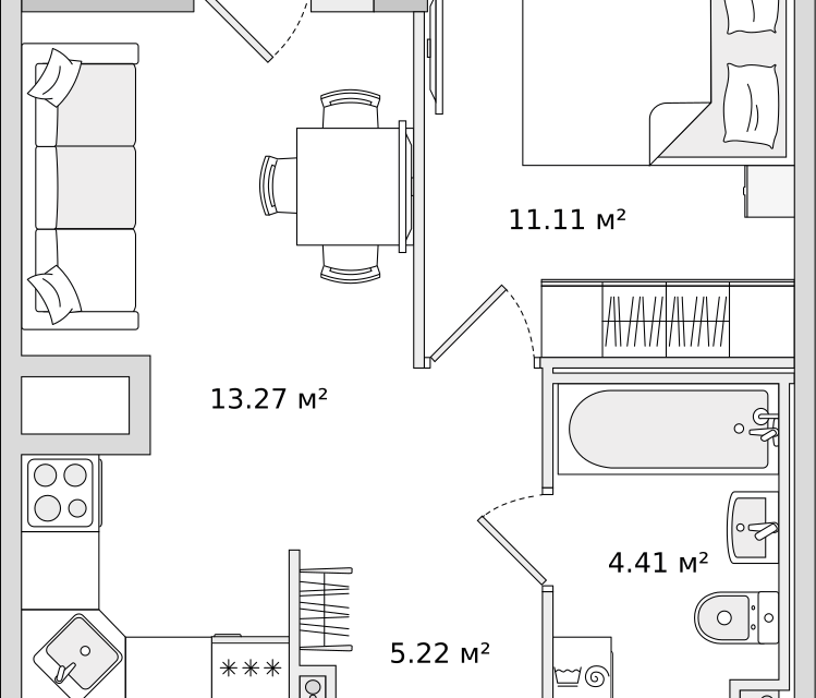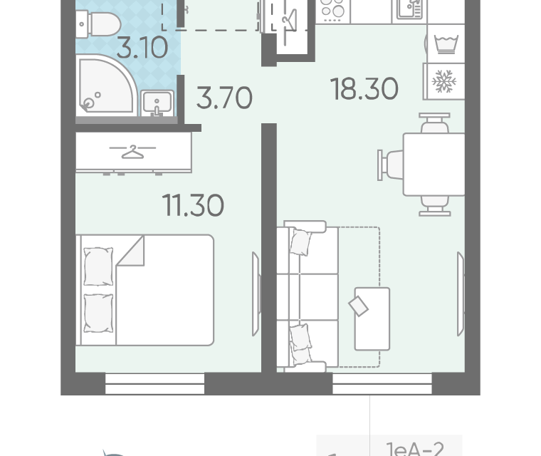 1-комн. кв., от 34.4 м², 2-8 этажи