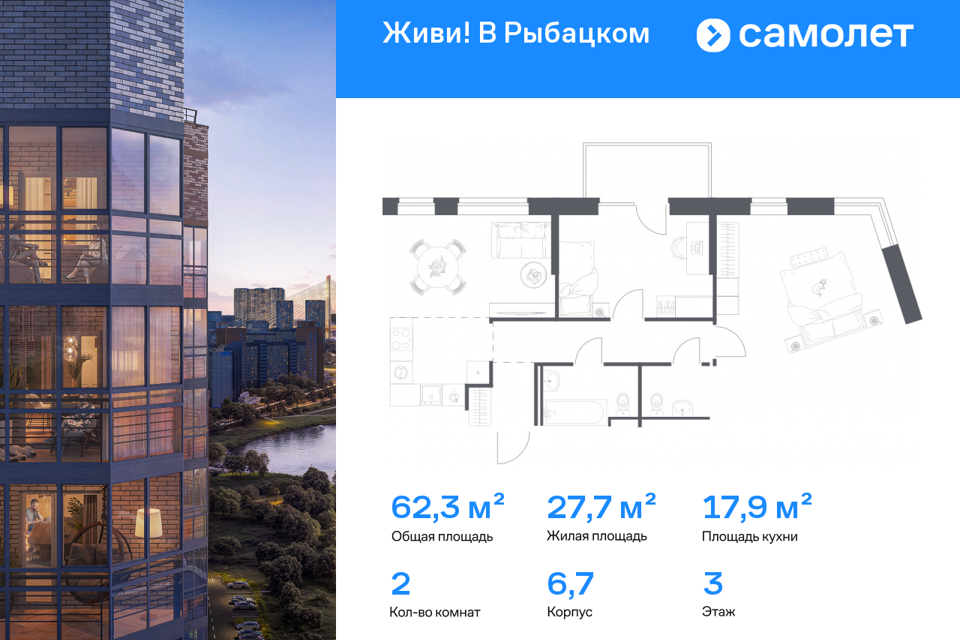 2-комн. кв., от 62.25 м², 3-14 этажи