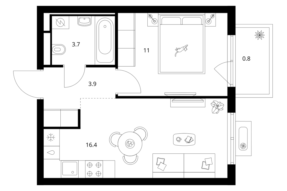 1-комн. кв., от 36.04 м², 5-8 этажи