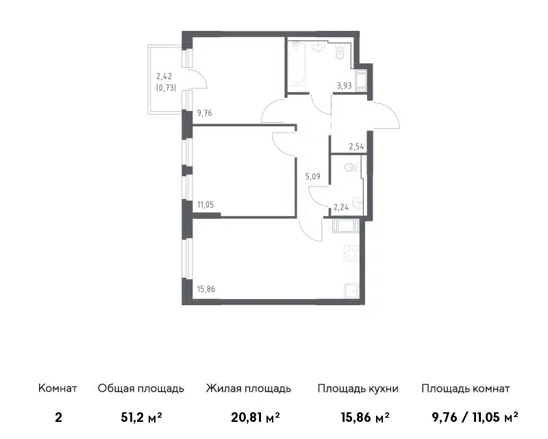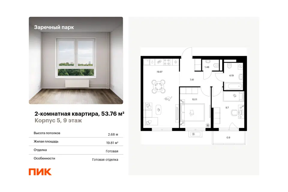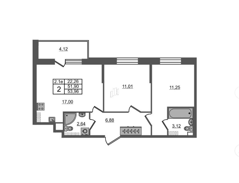 2-комн. кв., от 53.76 м², 2-7 этажи