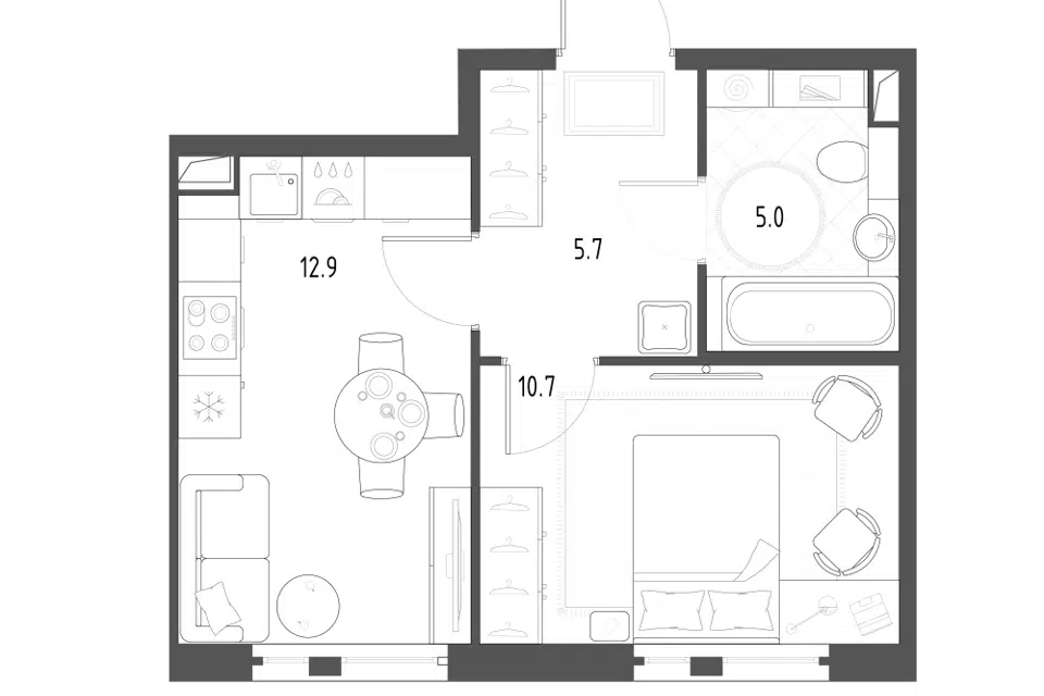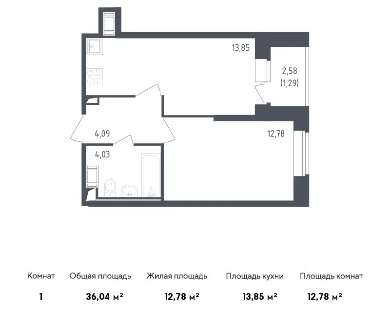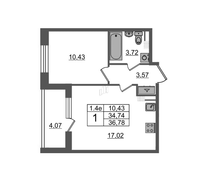 1-комн. кв., от 36.45 м², 7-8 этажи
