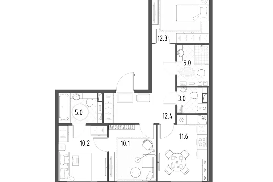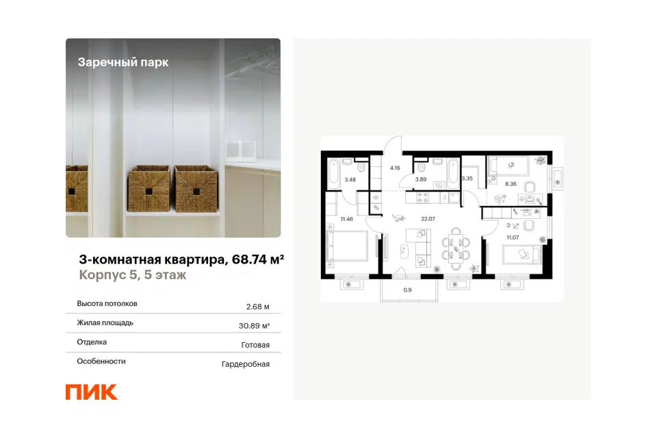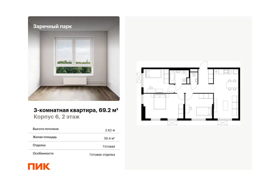 3-комн. кв., от 63.32 м², 3-11 этажи