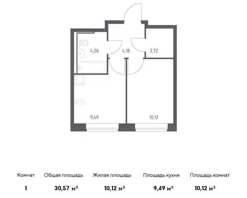 1-комн. кв., 30.57 м², 21/24 этаж