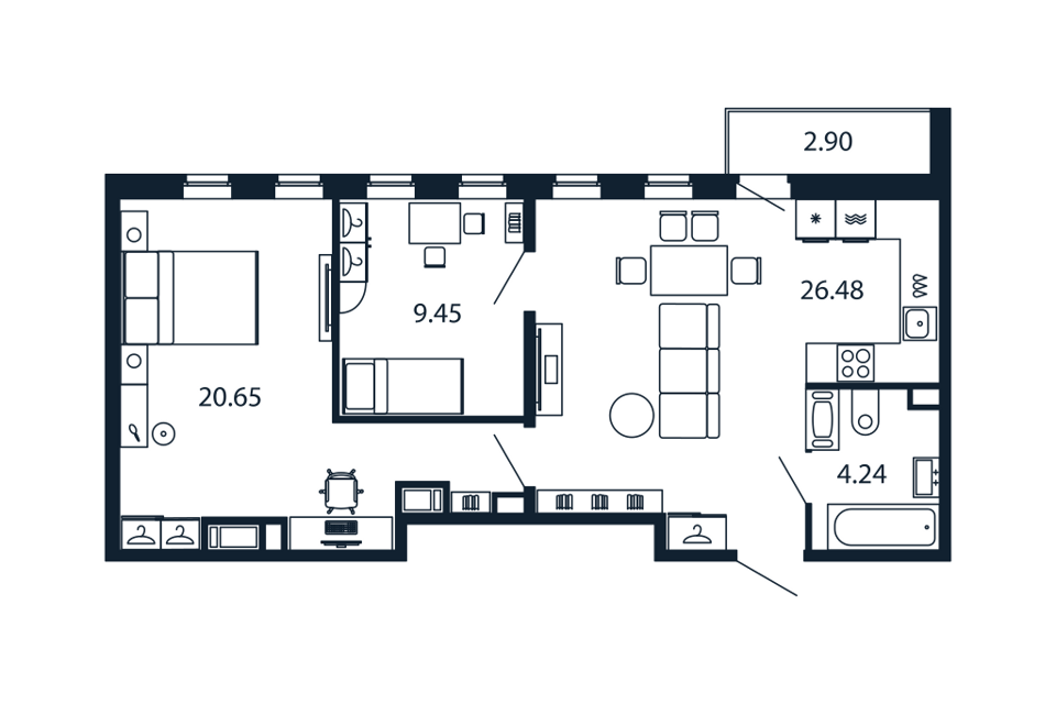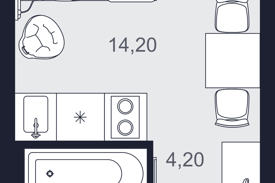 Студия, 20.2 м², 24/26 этаж