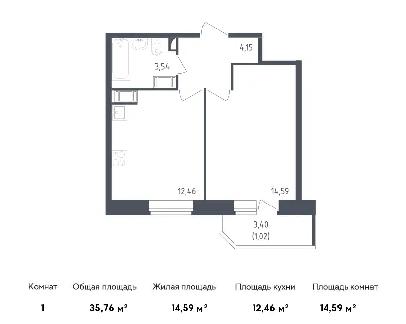 1-комн. кв., от 35.4 м², 3-12 этажи