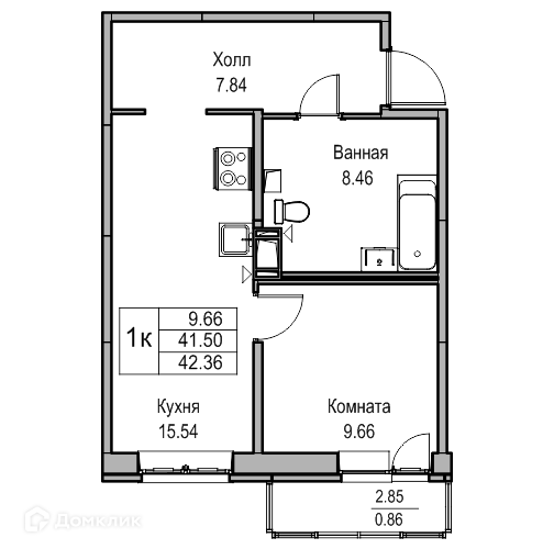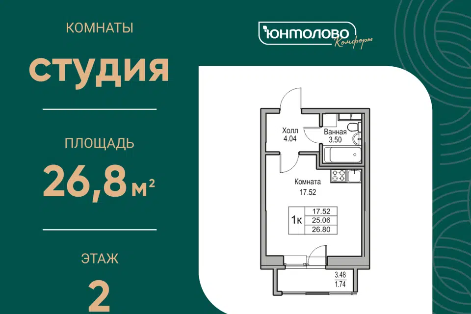 1-комн. кв., от 41.5 м², 7-19 этажи