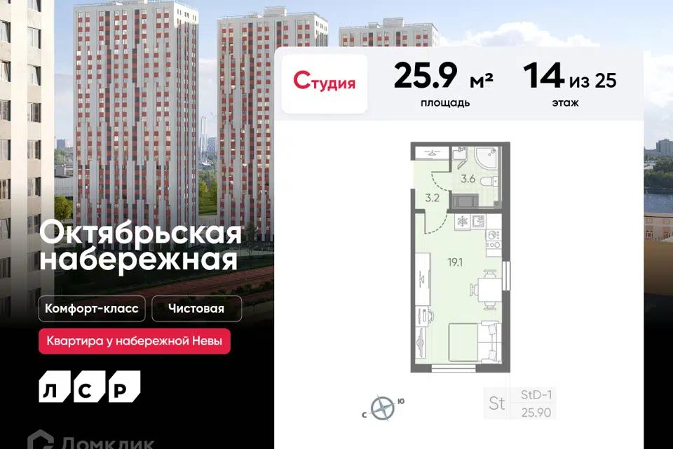 Студия, 25.9 м², 15/25 этаж
