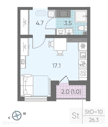 Студия, 20.2 м², 17/26 этаж