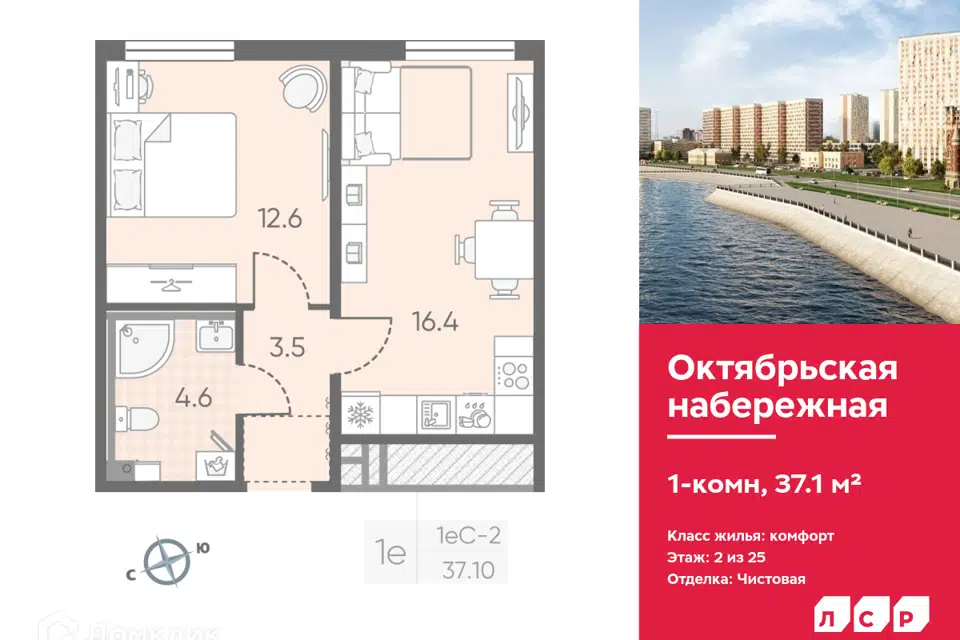 1-комн. кв., от 37.1 м², 10/25 этаж