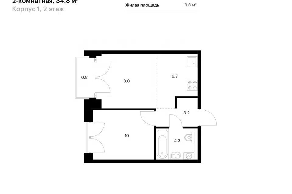1-комн. кв., 34.8 м², 8/9 этаж
