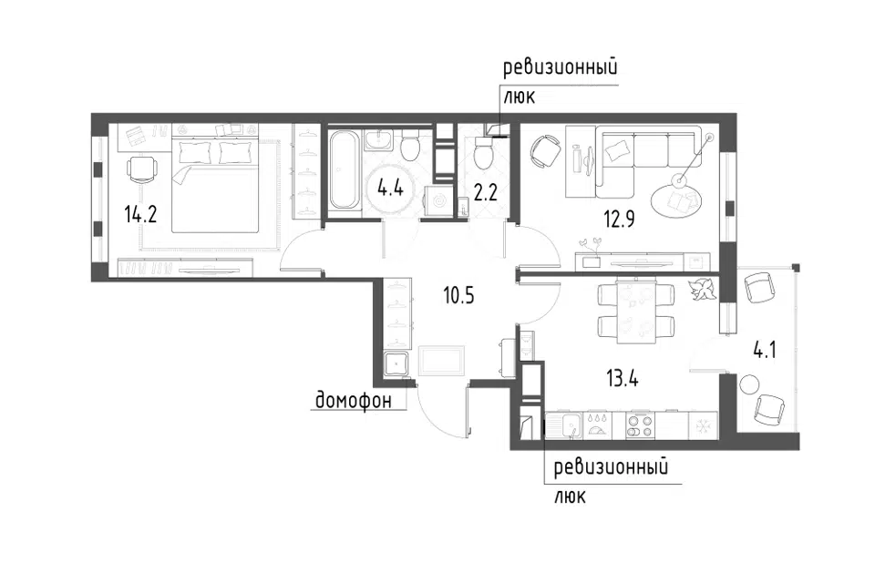 2-комн. кв., 50.4 м², 10/12 этаж