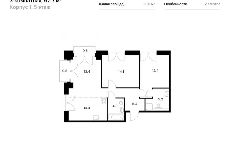 2-комн. кв., 67.7 м², 3/9 этаж