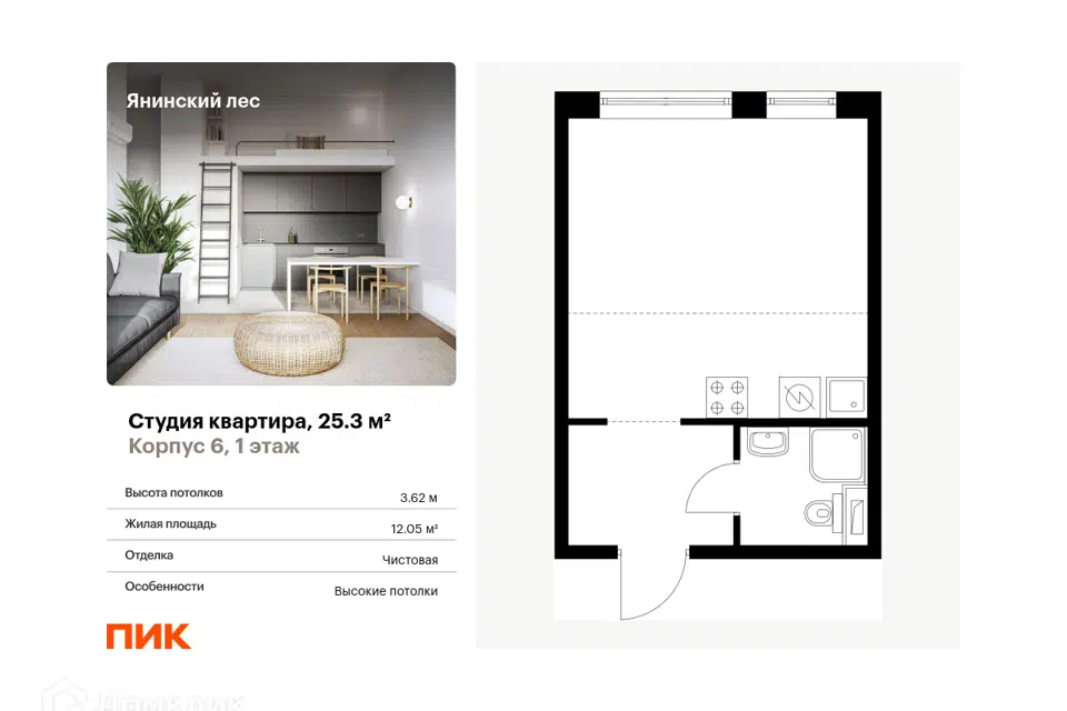 Студия, 25.3 м², 7/15 этаж