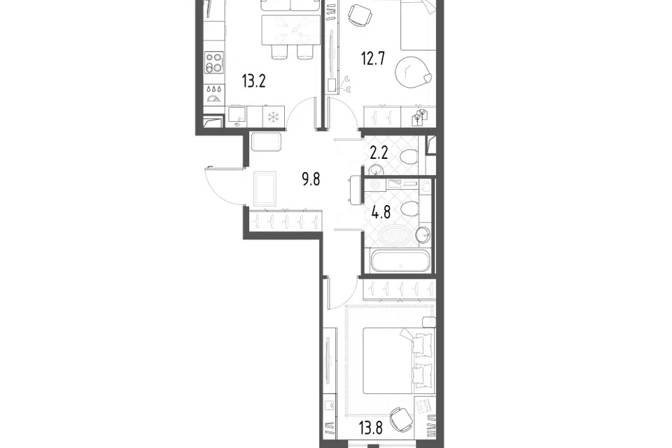 2-комн. кв., от 48.08 м², 3-11 этажи