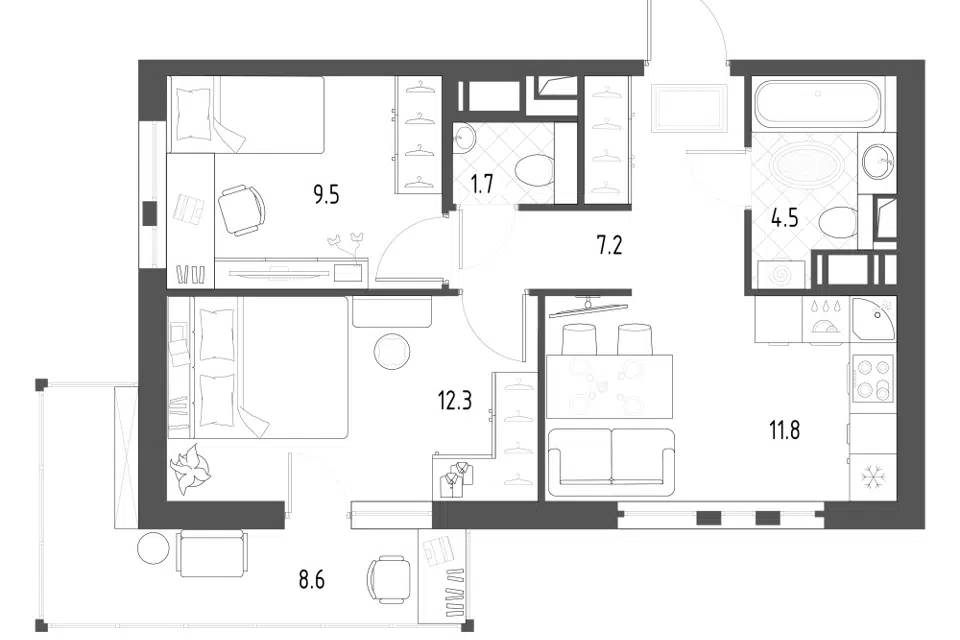 2-комн. кв., от 49.5 м², 8-11 этажи