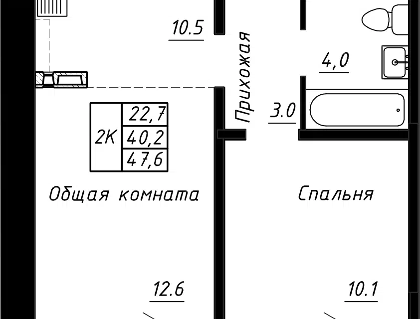 2-комн. кв., 47.6 м², 1/17 этаж