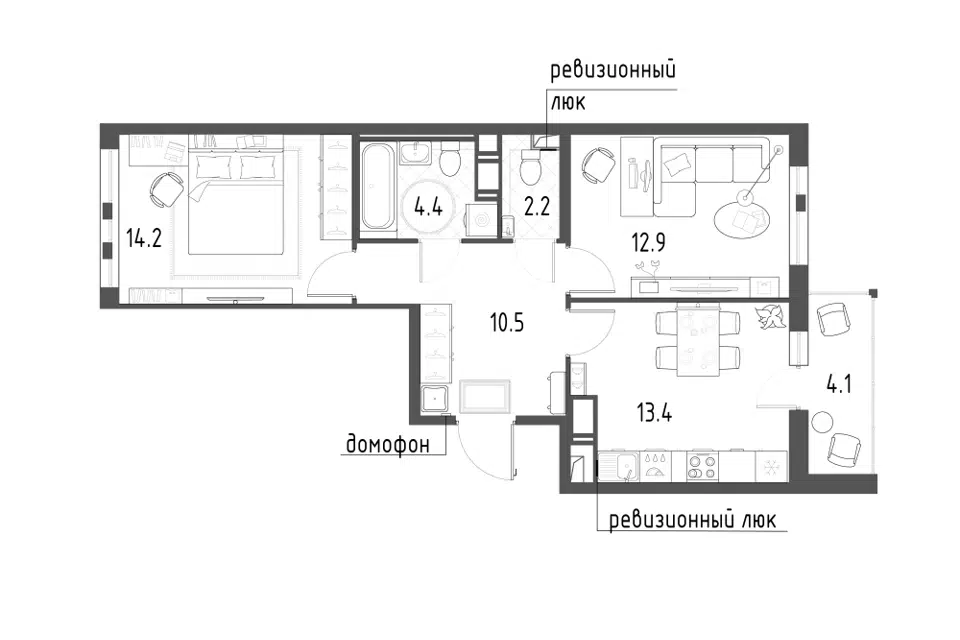 2-комн. кв., 50.4 м², 10/12 этаж