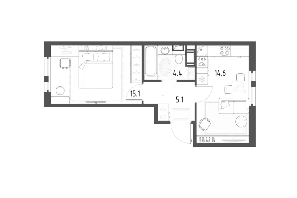 1-комн. кв., 34.8 м², 4/15 этаж