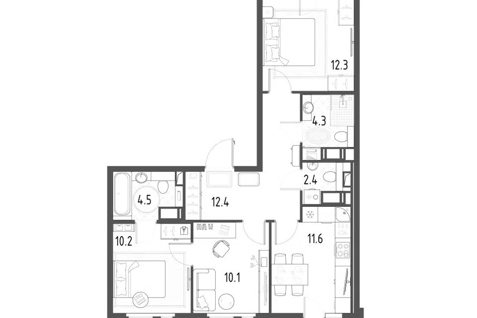 3-комн. кв., 96 м², 3/19 этаж