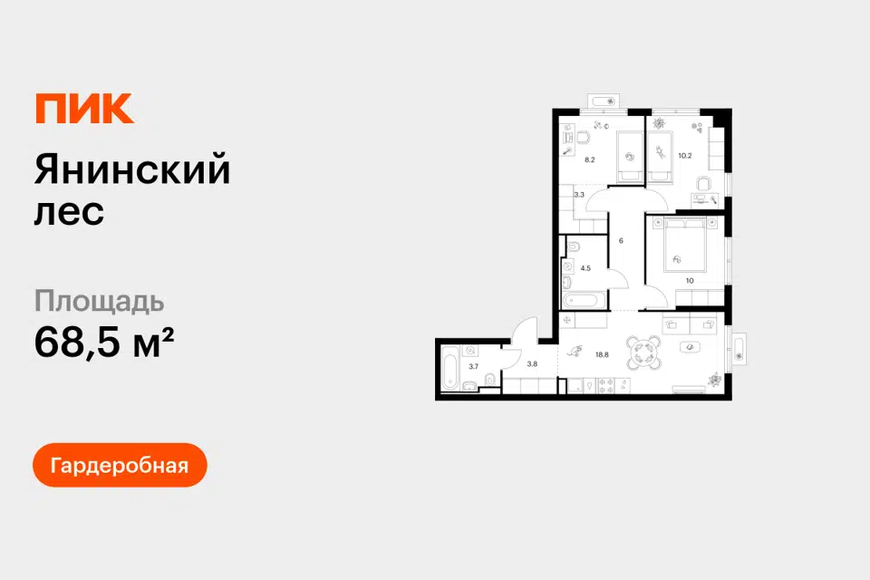 3-комн. кв., от 68.9 м², 1-10 этажи