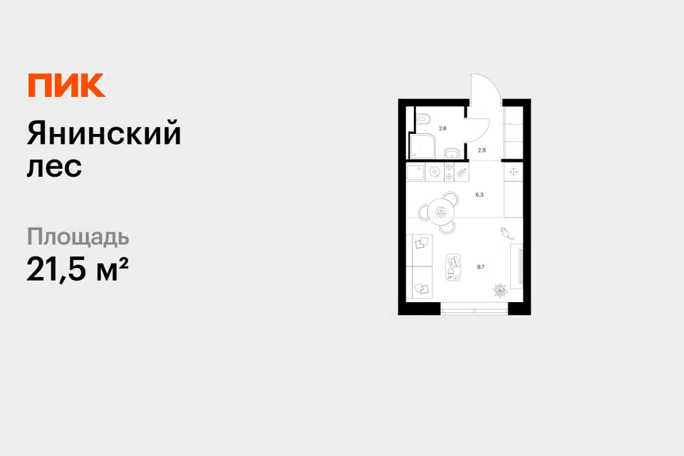 Студия, от 21.5 м², 1-10 этажи