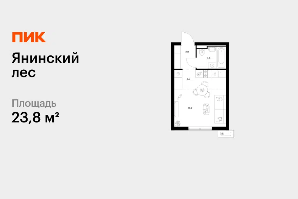 Студия, 25.6 м², 11/11 этаж