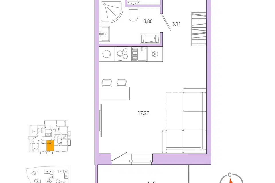 Студия, от 24.9 м², 1-11 этажи