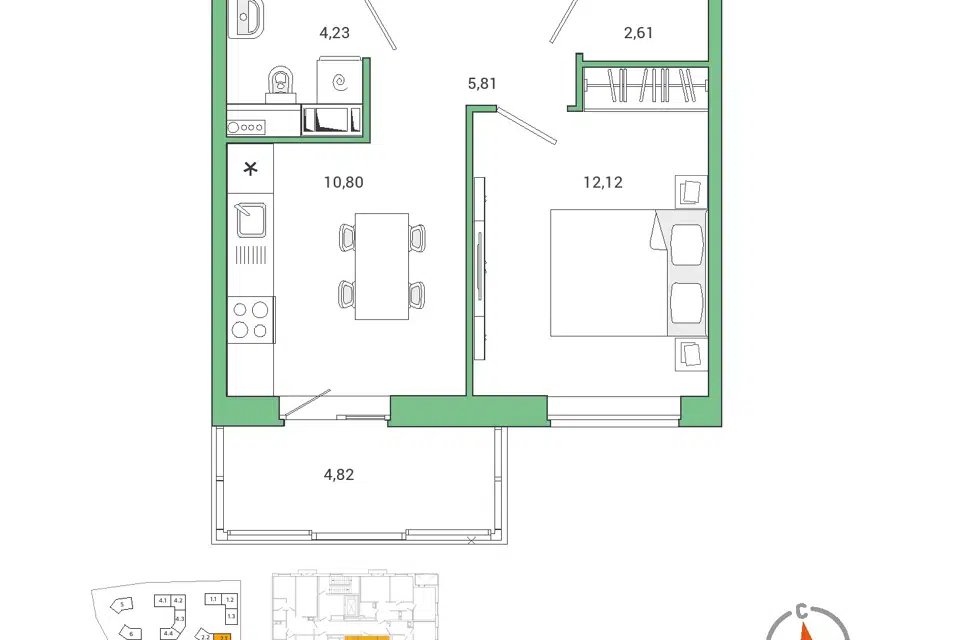 2-комн. кв., от 42.8 м², 4-25 этажи