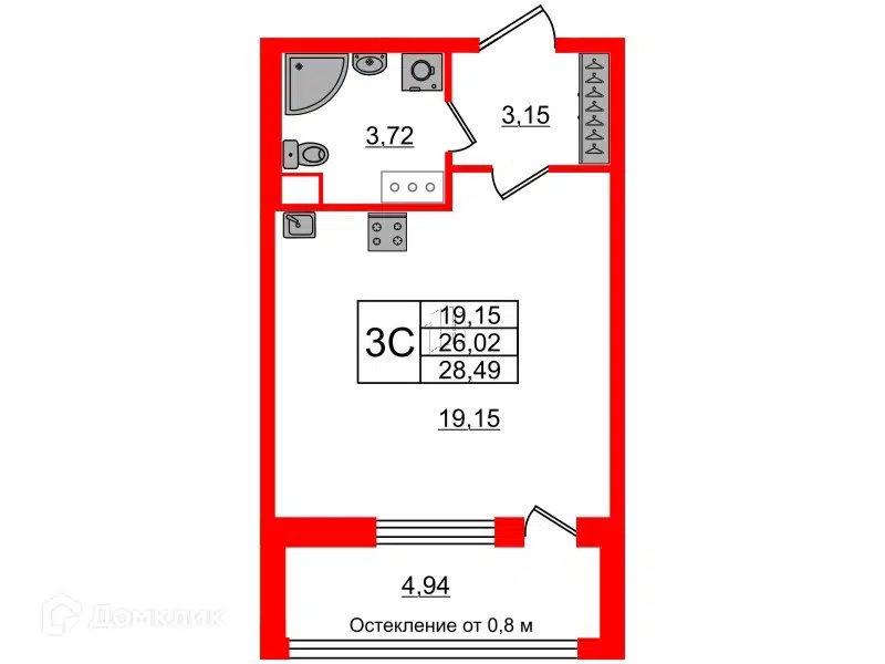 Студия, 26.02 м², 8/12 этаж