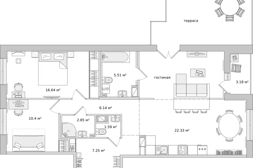 3-комн. кв., 98.77 м², 17/26 этаж