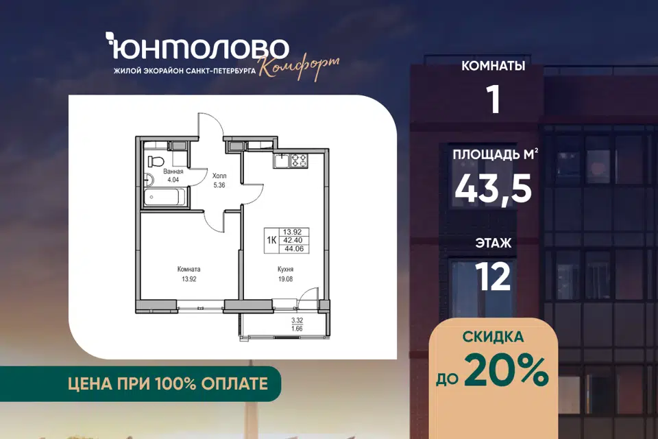 1-комн. кв., от 40.9 м², 13/14 этаж