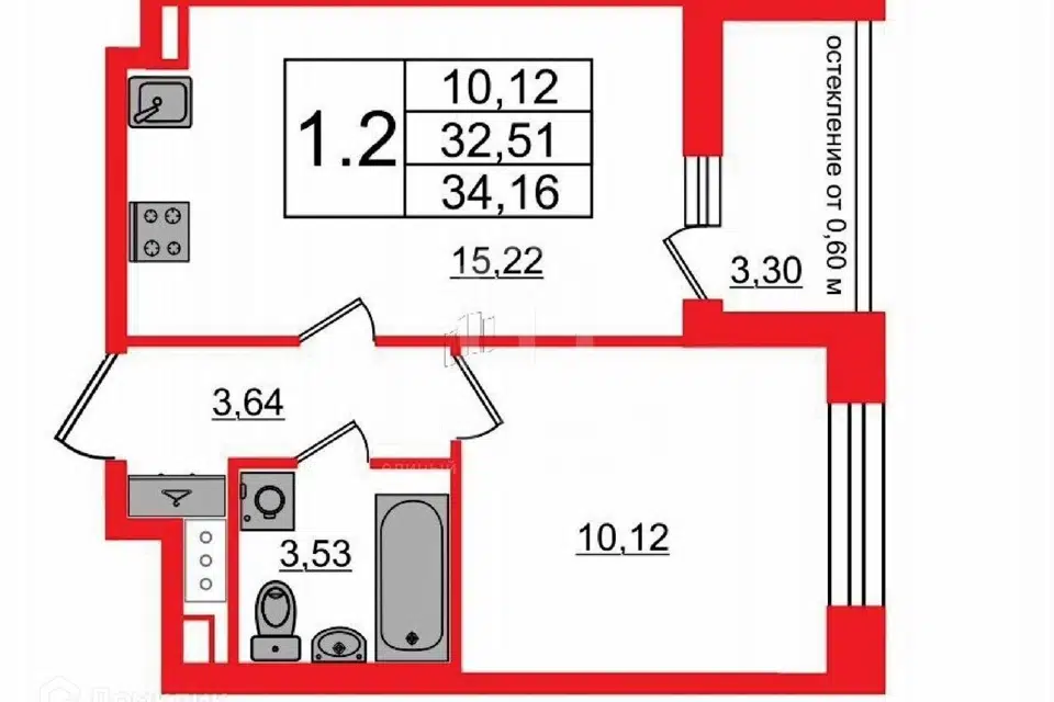 1-комн. кв., 32.51 м², 8/12 этаж