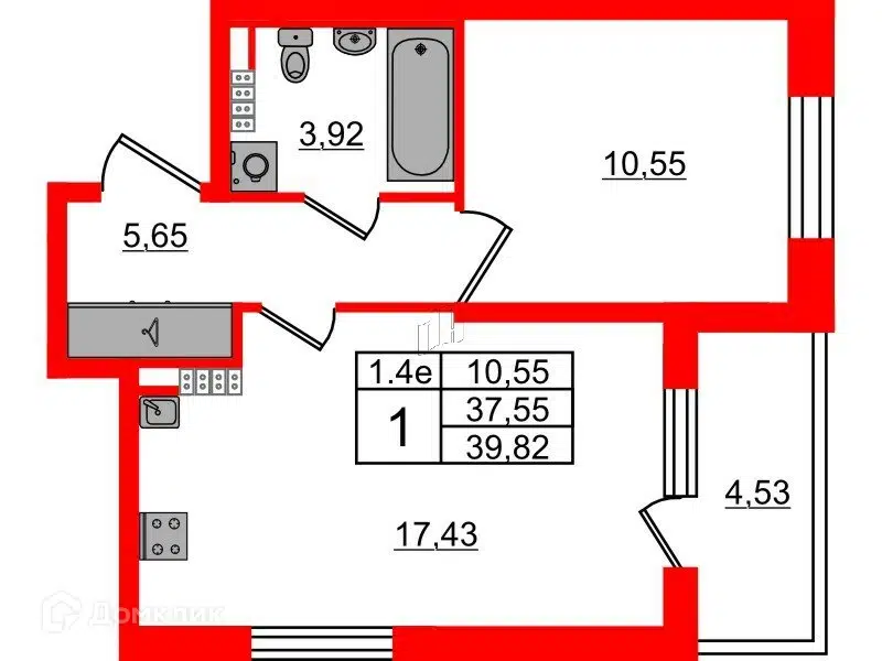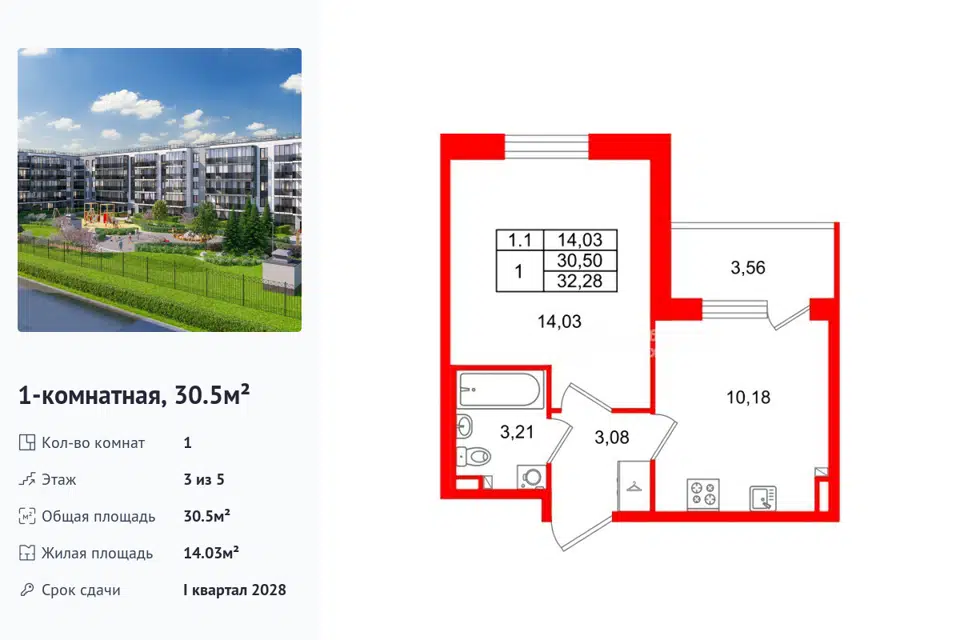 1-комн. кв., от 30.93 м², 5/1 этаж