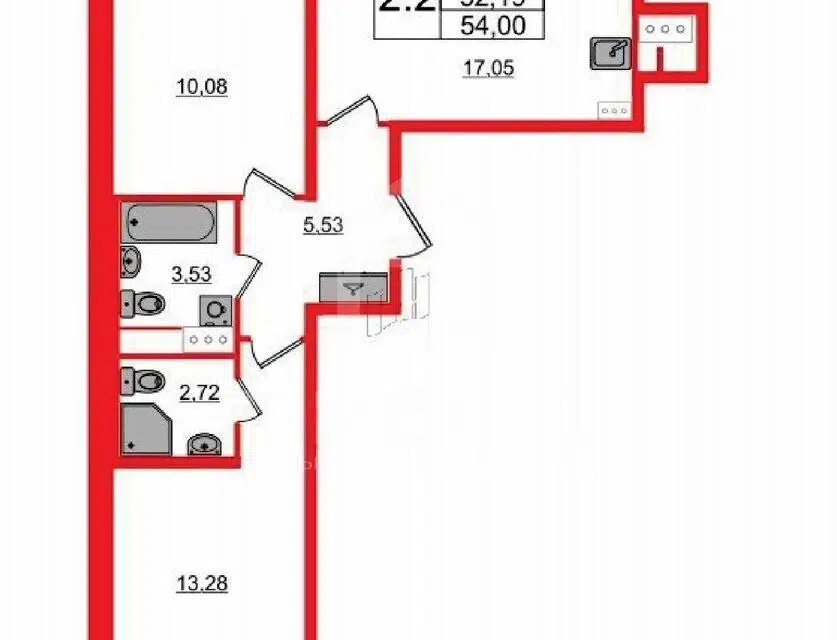 2-комн. кв., 52.19 м², 5/12 этаж