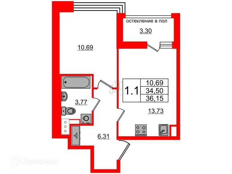 1-комн. кв., от 31.15 м², 5-6 этажи