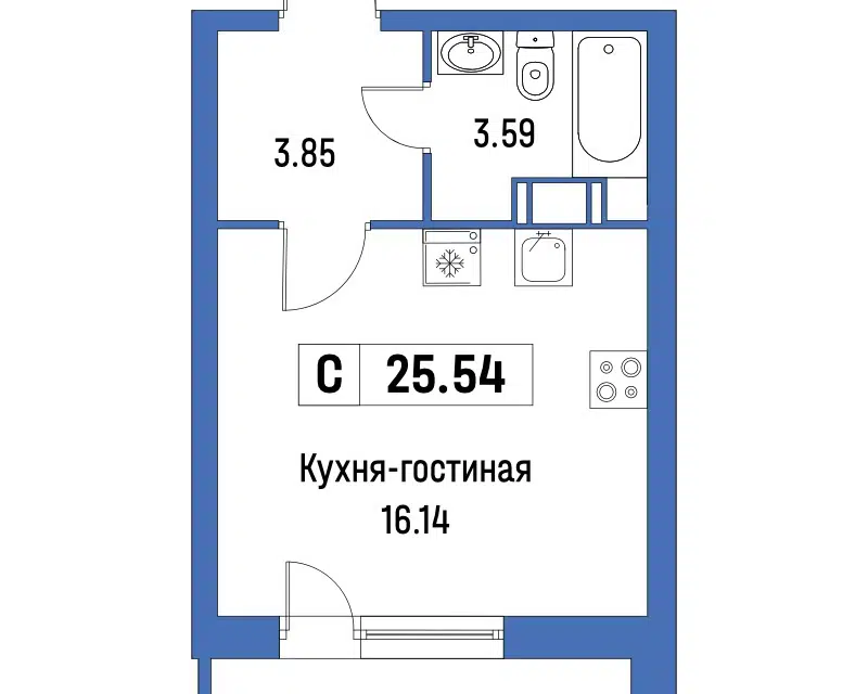 Студия, 25.54 м², 4/16 этаж