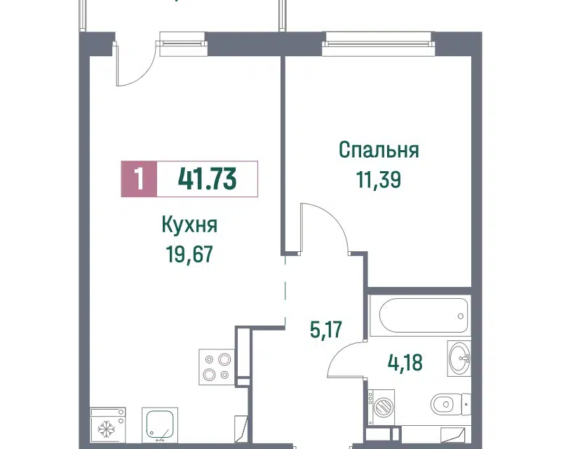 1-комн. кв., 41.73 м², 7/16 этаж