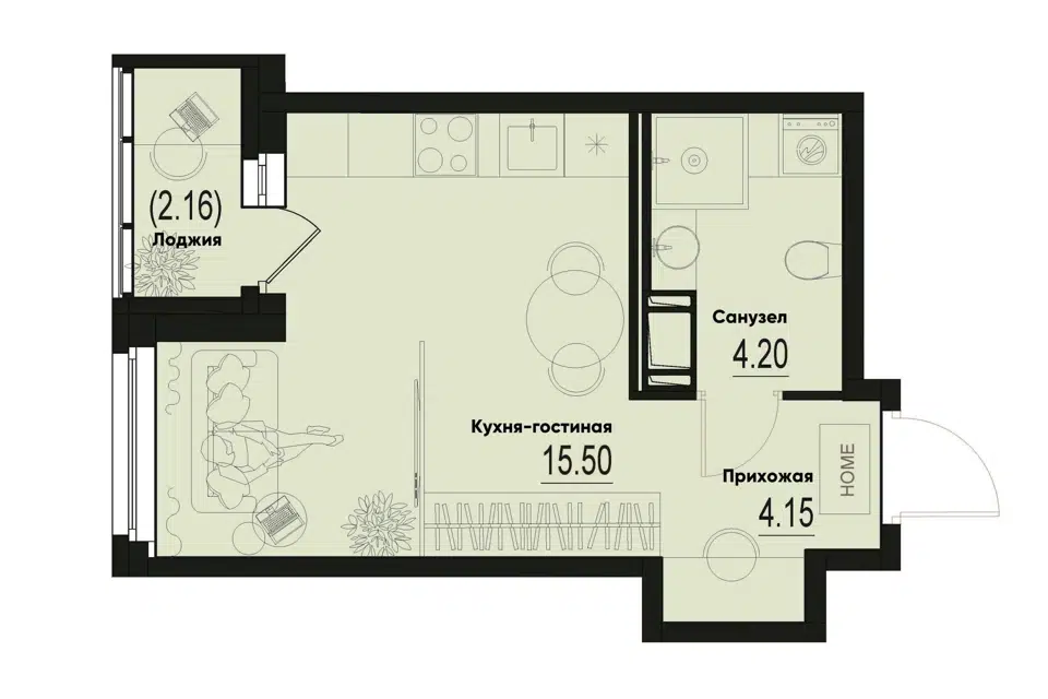 Студия, от 24.93 м², 6-8 этажи