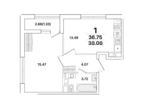 1-комн. кв., 36.75 м², 12/12 этаж