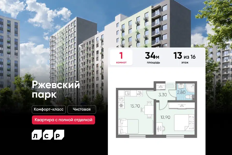1-комн. кв., 34 м², 13/16 этаж